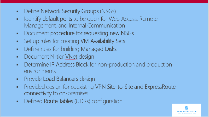 Active Directory Domain Services, Physical, Virtual, VMWare, Hyper-V, AWS, VPC, VNet, AZURE AD, IAM, SQL Always On, SQL PaaS, Server 2012r2-2016 Configuration, Patching, AZURE Automation, Cloud Formation, AZURE RM, PowerShell," Infrastructure as Code". TCOI infrastructure, EA Subscription management Devops and end to end Azure to Azure DR experience. Experience with IT compliance and risk management requirements (logging, monitoring. security, privacy, SOX, HIPAA etc.)